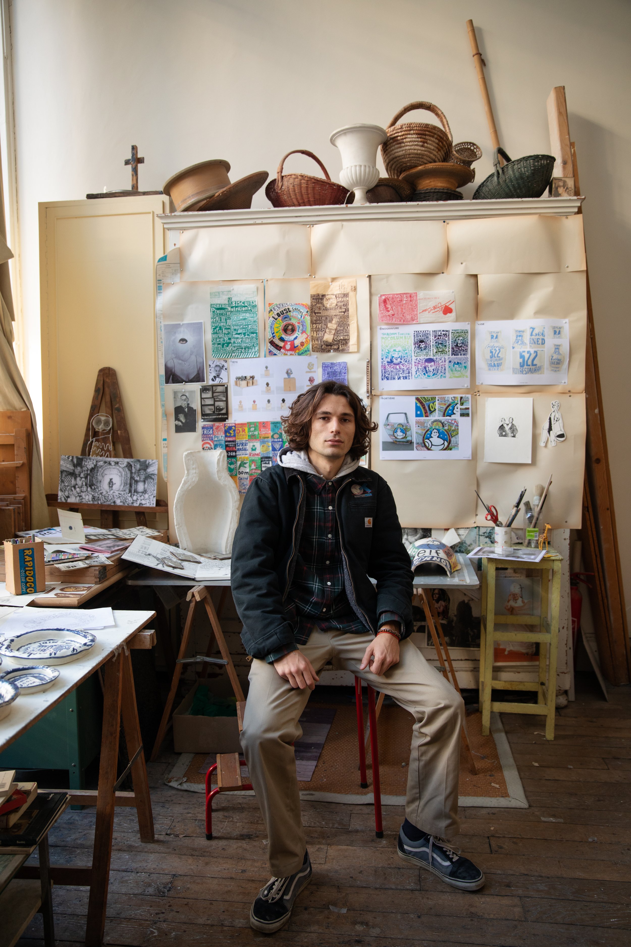 Entre dessin et céramique, Constantin explore le secret de nos empreintes. Celles que nous laissons sur le Monde et celles que le Monde inscrit sur nos imaginaires. Il développe son écriture artistique et plastique à sa sortie de Penninghen autour de pièces à la fois singulières et intemporelles, entièrement réalisées à la main, parfaitement irrégulières. Ses illustrations à l’engobe bleu qui rappellent les motifs de services traditionnels et les tatouages excentriques de marins, dévoilent son univers onirique et sans frontières. Constantin nourrit sans cesse son trésor d’inspirations et d’influences au quatre coins des villes.